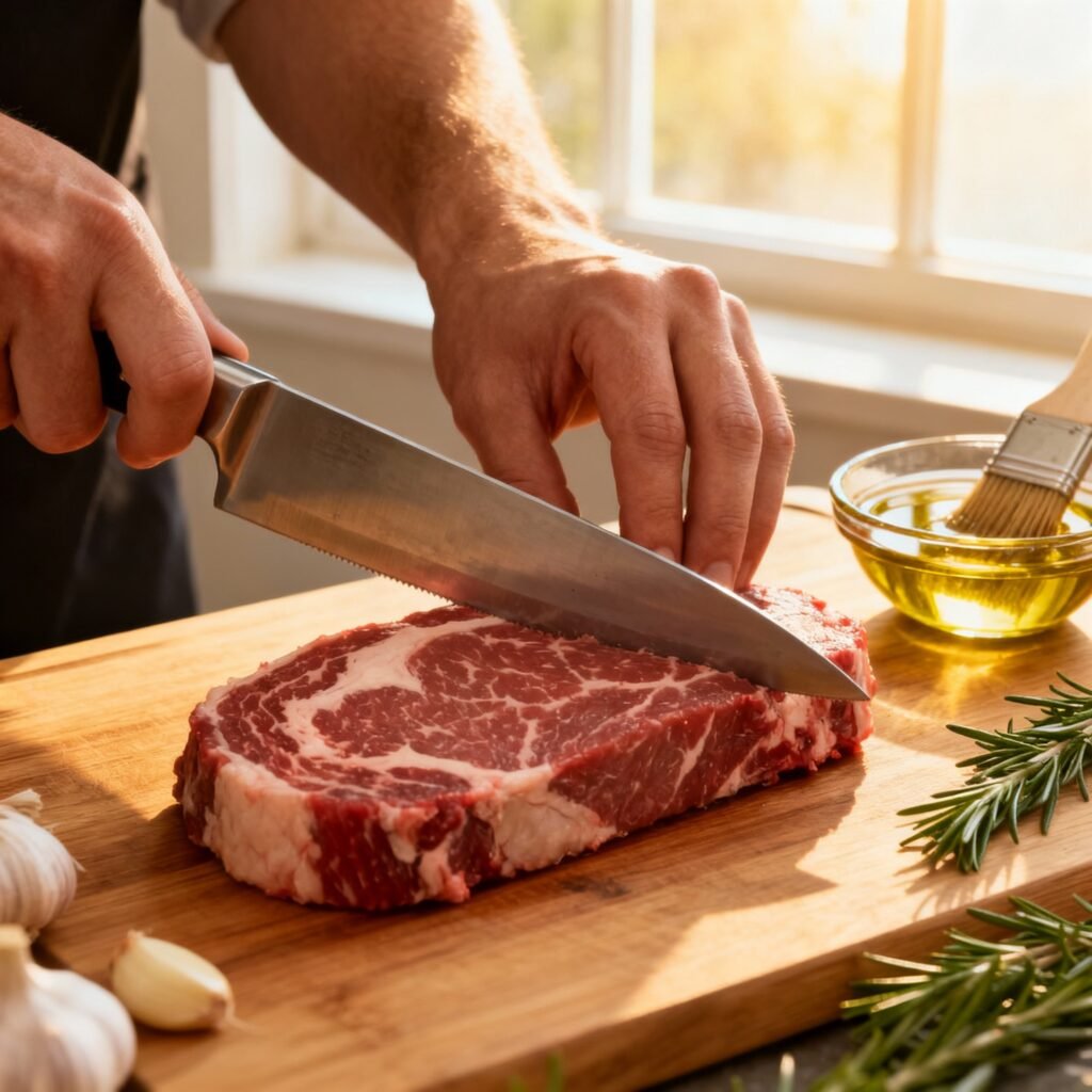 - Prepare the Steak: Pat the steak dry with paper towels. This is crucial for achieving a good sear.