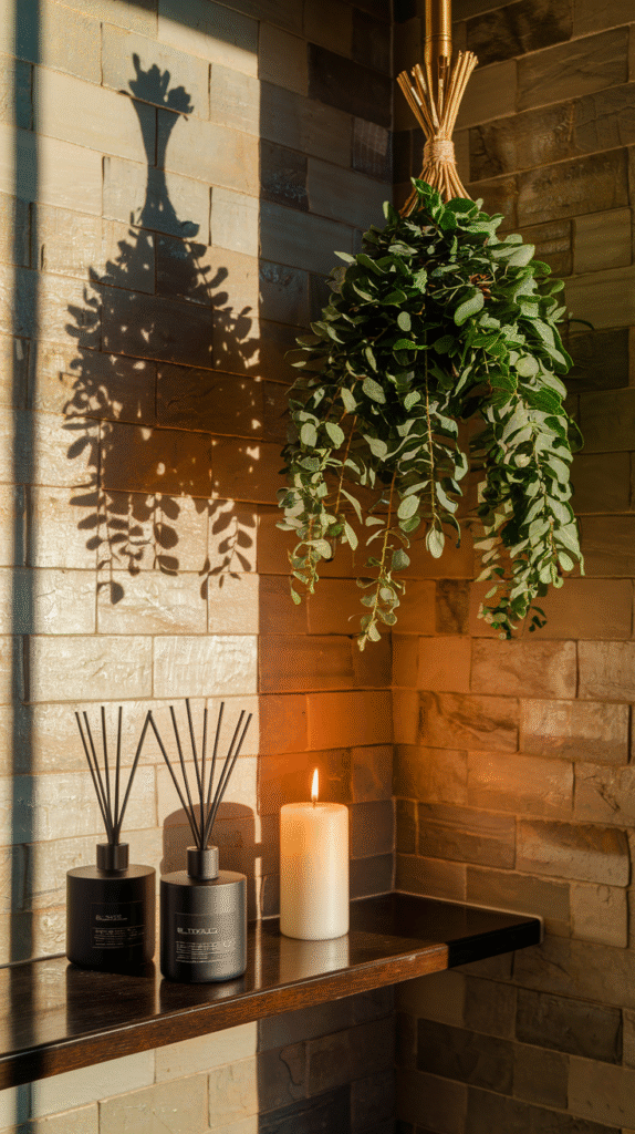 Candles, diffusers, even eucalyptus hanging in the shower—scent is one of the easiest bathroom decor upgrades.
