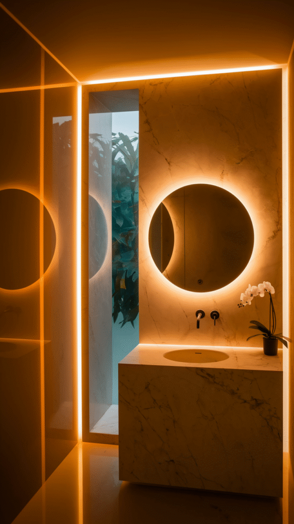 - Accent lighting: Think under-cabinet LEDs or backlit mirrors.