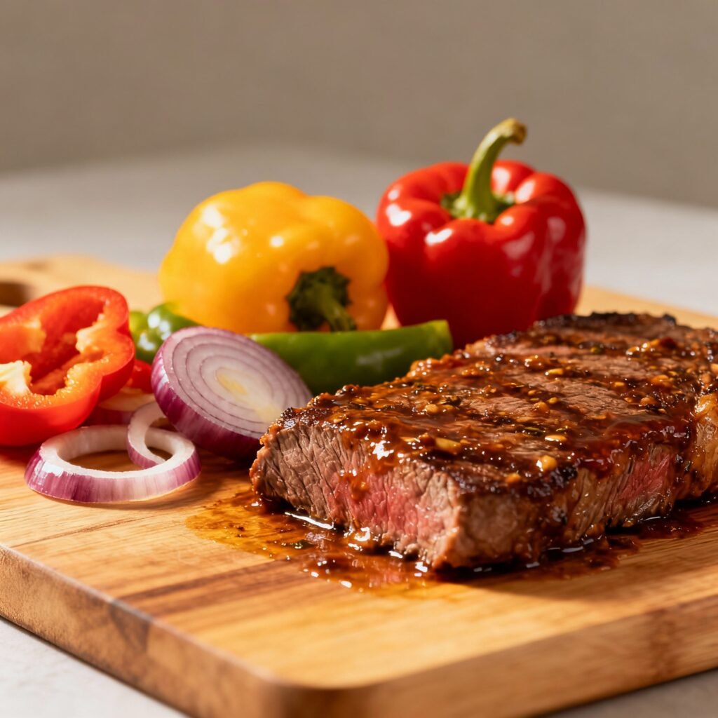 - Slice and Serve: Slice the steak (or chicken) thinly against the grain. Return the sliced meat to the skillet with the cooked vegetables. Toss to combine and warm through.