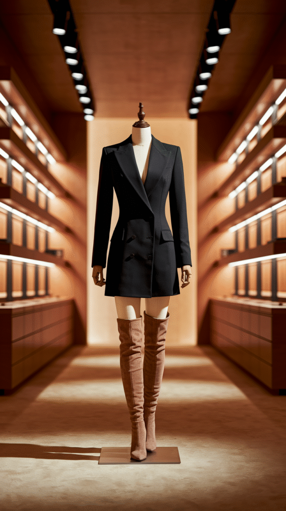 2. Chic Blazer Dress + Over-the-Knee Boots