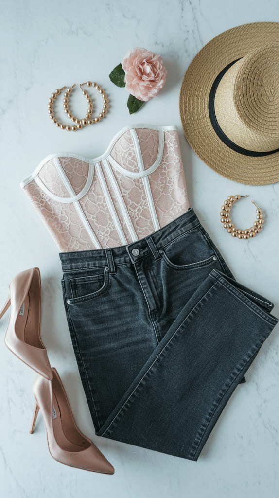4. High-Waisted Jeans + Corset Top + Heels