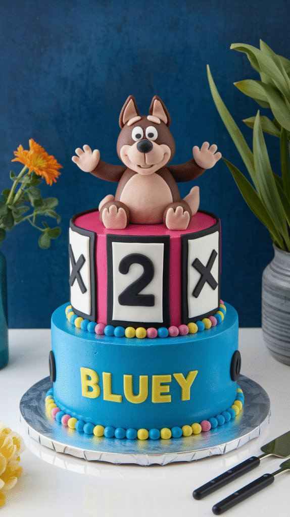 Okay, technically not a single cake, but hear me out: a cupcake tower decorated with Bluey toppers is party gold. Kids get their own mini cake, and you donât have to wield a knife while twenty sugar-hungry eyes watch you.