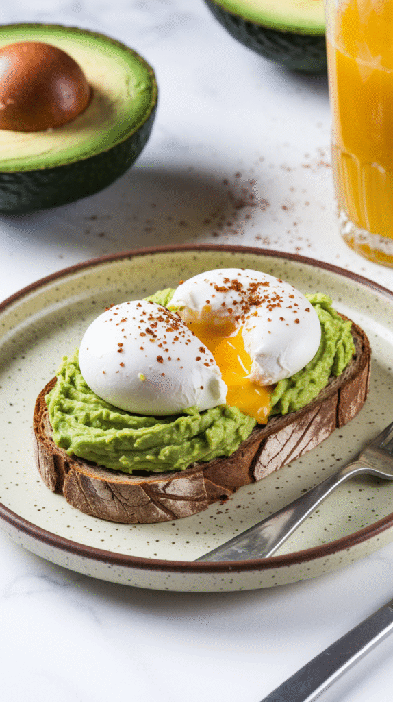 4. Spread avocado mash on toast, top with egg, sprinkle chili flakes.