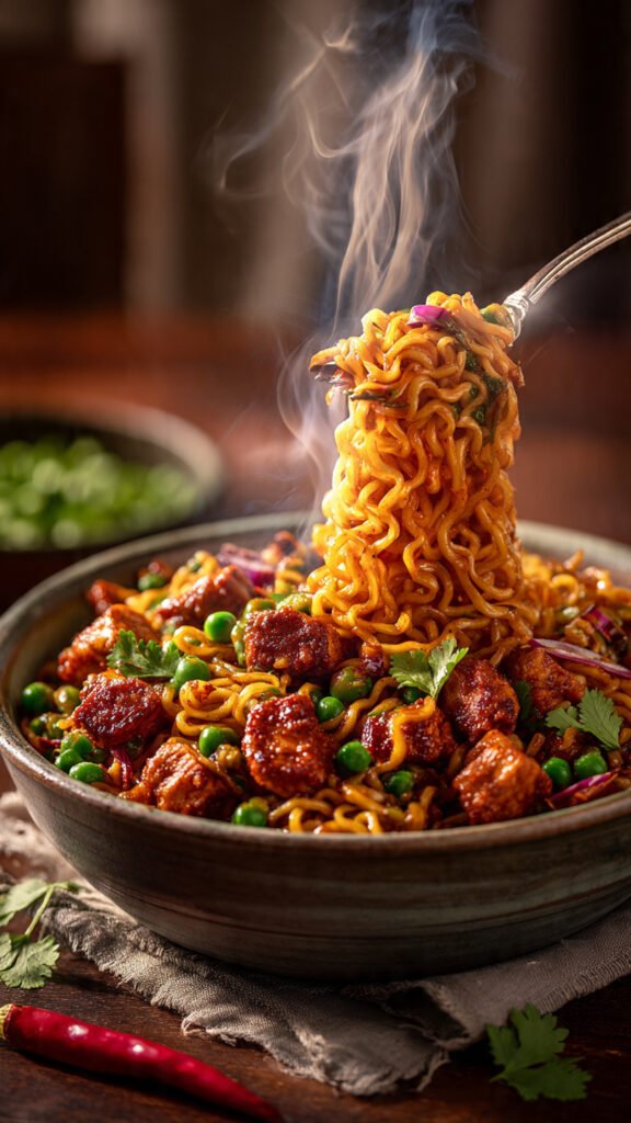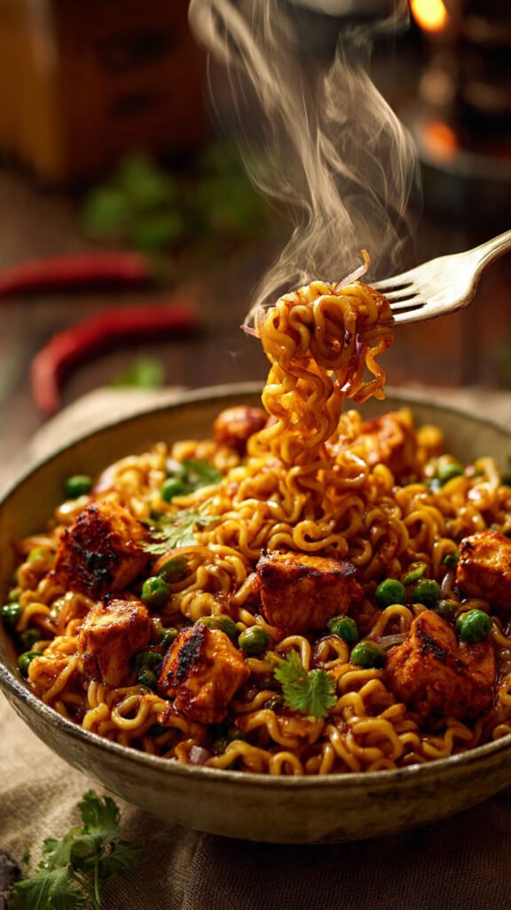 If you grew up in South Asia, or have just been lucky enough to stumble upon the cult of “Masala Maggi,” you know this isn’t just instant noodles. Itâs an emotion. It’s a hug in a bowl. And when you add chicken to the mix? Oh, baby. Youâve just graduated from “sad dorm snack” to “legitimate meal that I would serve to guests if they were cool enough.”