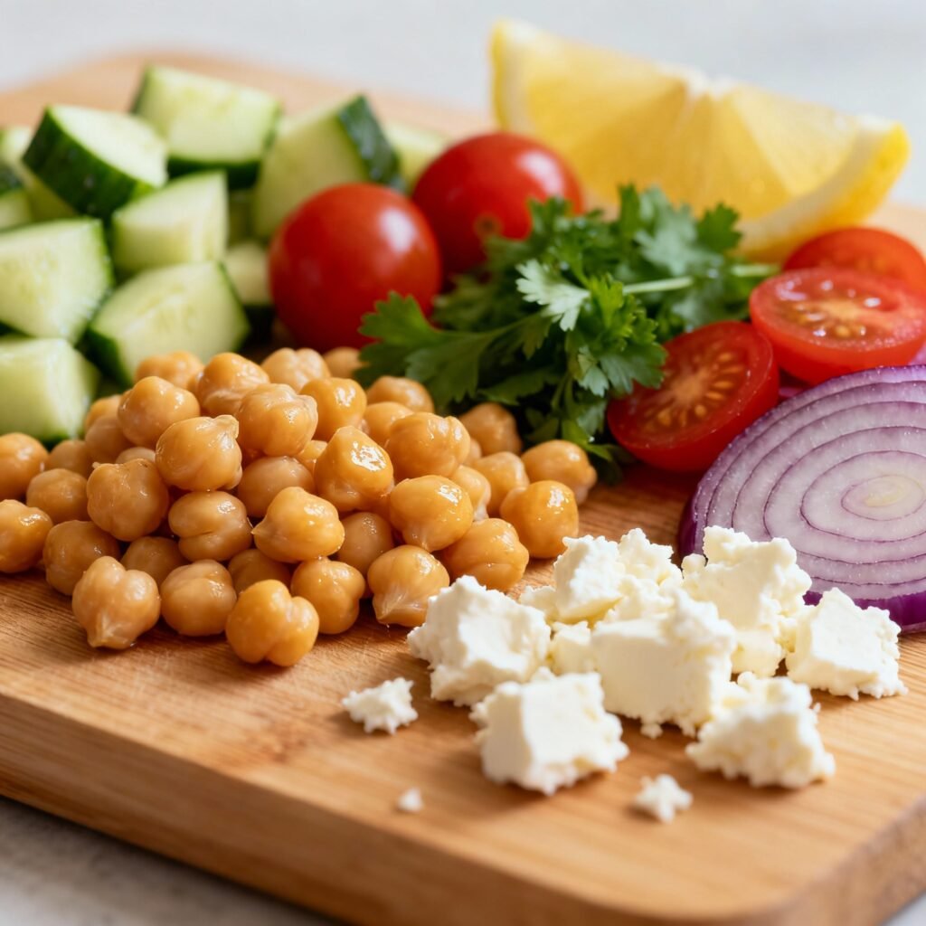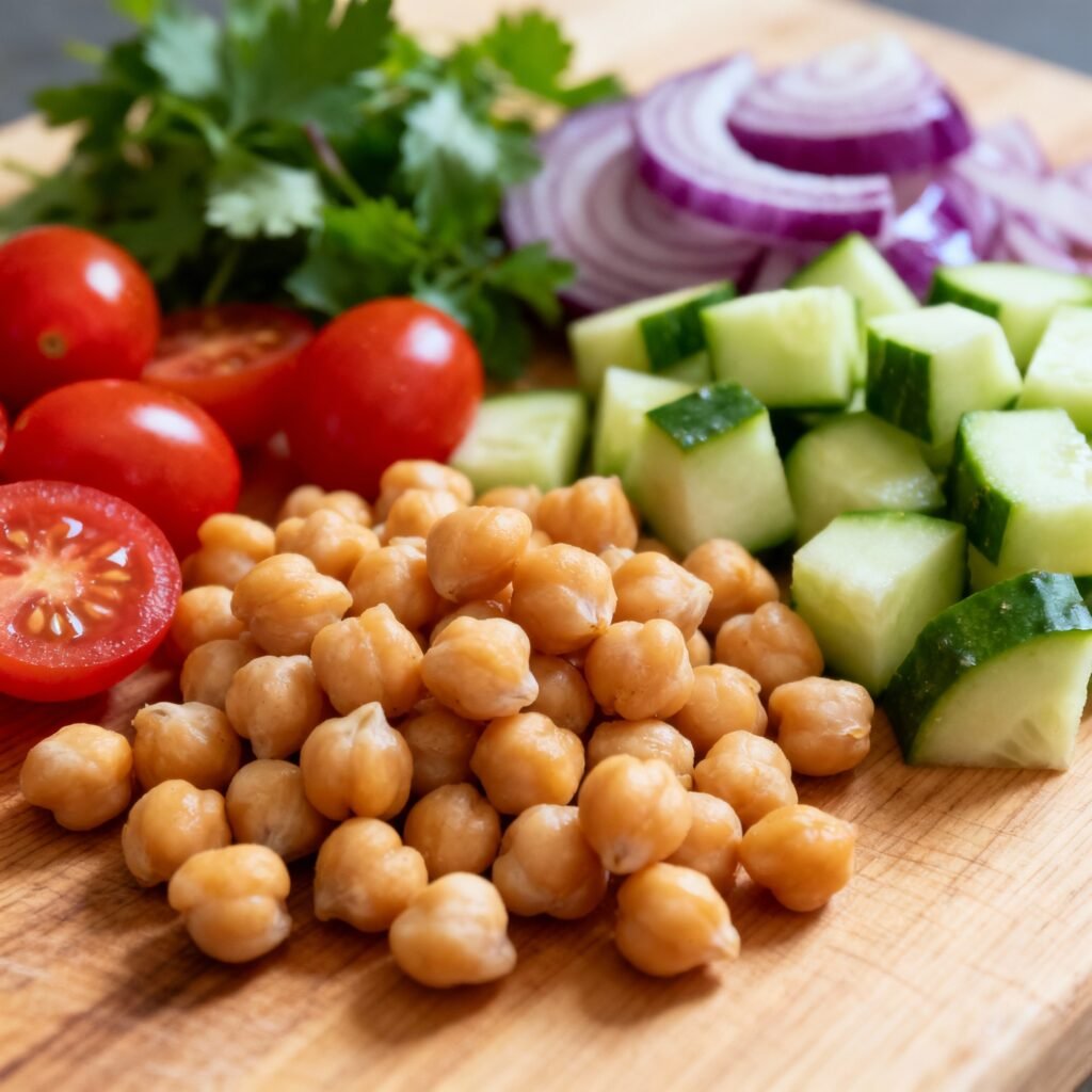 - Health: Chickpeas are a fantastic source of protein and fiber, keeping you feeling full and satisfied. This salad is also packed with vitamins and minerals from the vegetables, making it a nutritious and healthy choice.