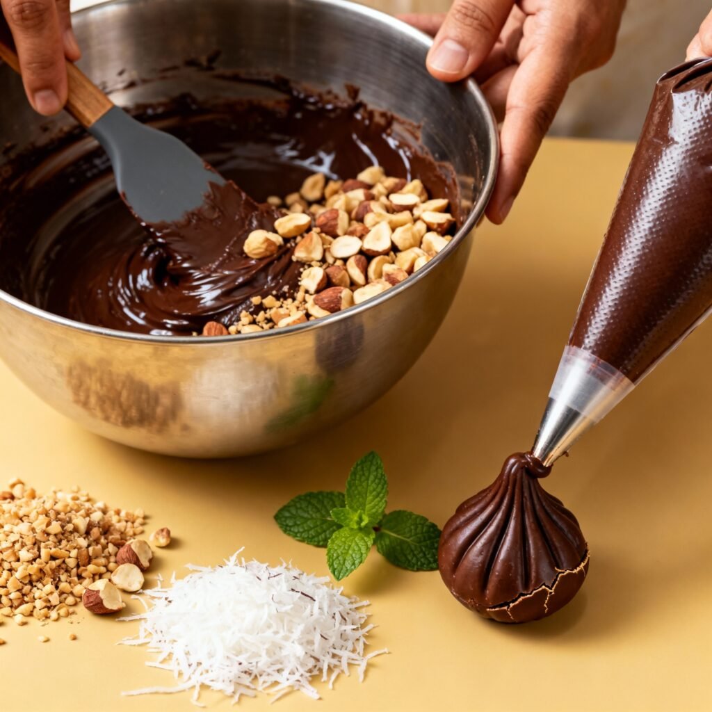 - Add Optional Ingredients: If using, add the chopped milk chocolate, cardamom powder, and chopped nuts to the filling. Mix well.