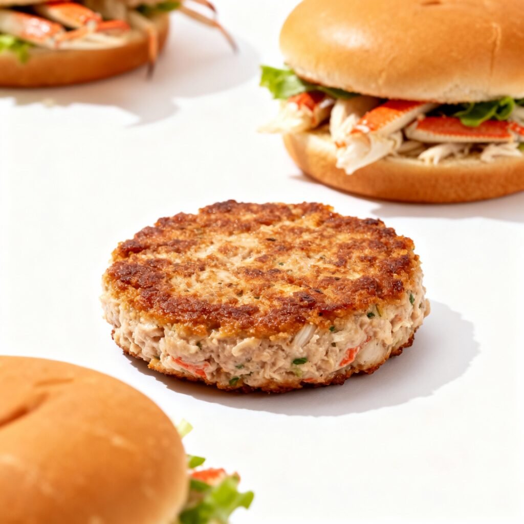 - Add the Patty: Place a cooked crab patty on top of the toppings.