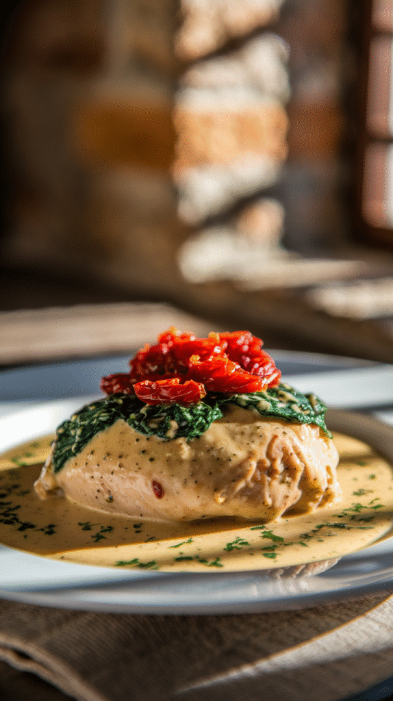 Think chicken swimming in a dreamy garlic cream sauce with sun-dried tomatoes. Yep, it’s as good as it sounds.