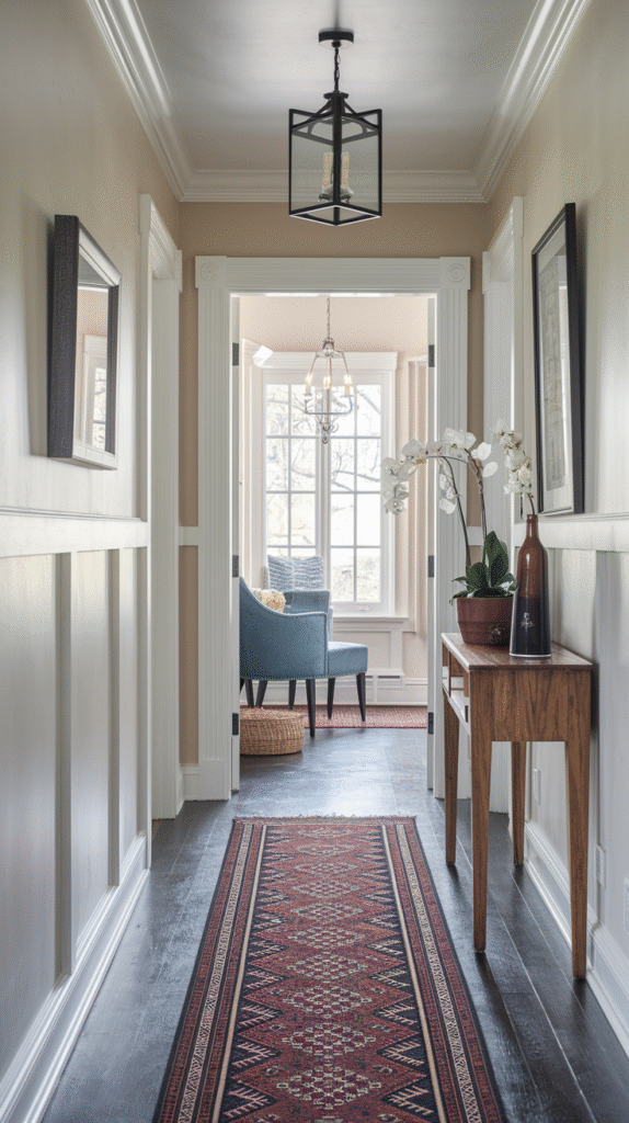 You know what instantly makes an entryway feel warm? A rug. Not the boring doormat kind, but a stylish runner or accent rug that adds personality.