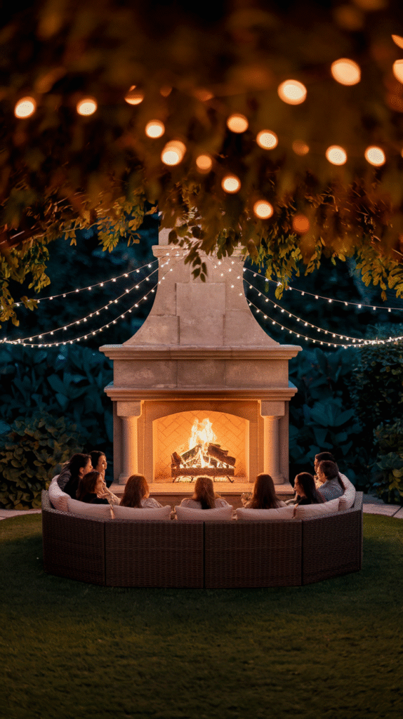 Get some weatherproof seating around it. Nothing kills the mood faster than realizing your “cozy night outside” involves damp cushions.