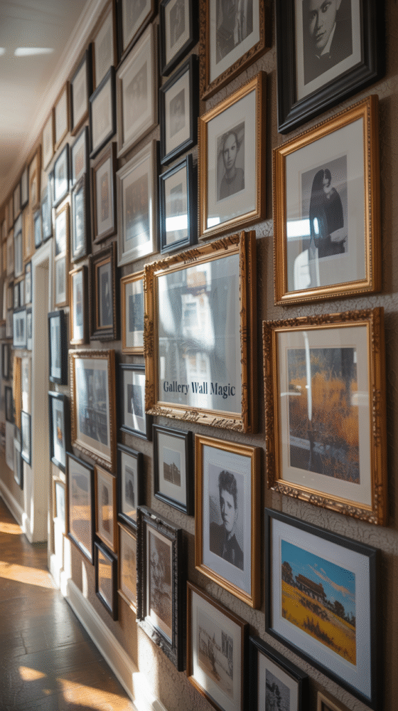 Hallways are long, narrow, and usually plain. By covering one side with framed photos, prints, or artwork, you instantly create interest. Plus, it’s personal—you’re literally telling your story with pictures.