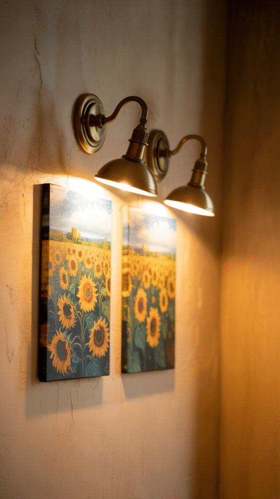 • Warm Bulbs: Soft, warm tones make art feel cozy and inviting.