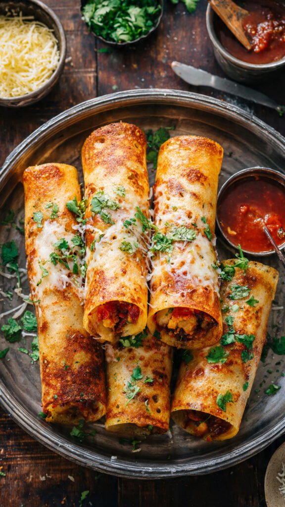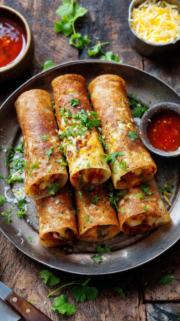 First off, it’s a texture bomb. We are aiming for that holy grail of dosa engineering: an impossibly crispy bottom layer that somehow supports a gooey, saucy, molten interior of veggies and cheese. When you bite into one of those little rolls, you get the crunch, followed immediately by the rich, spicy filling. It’s addictive.