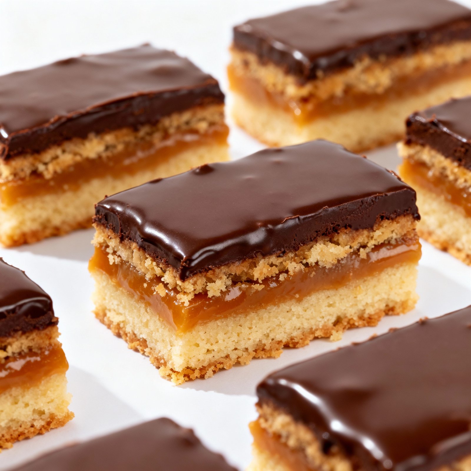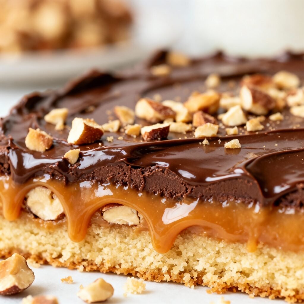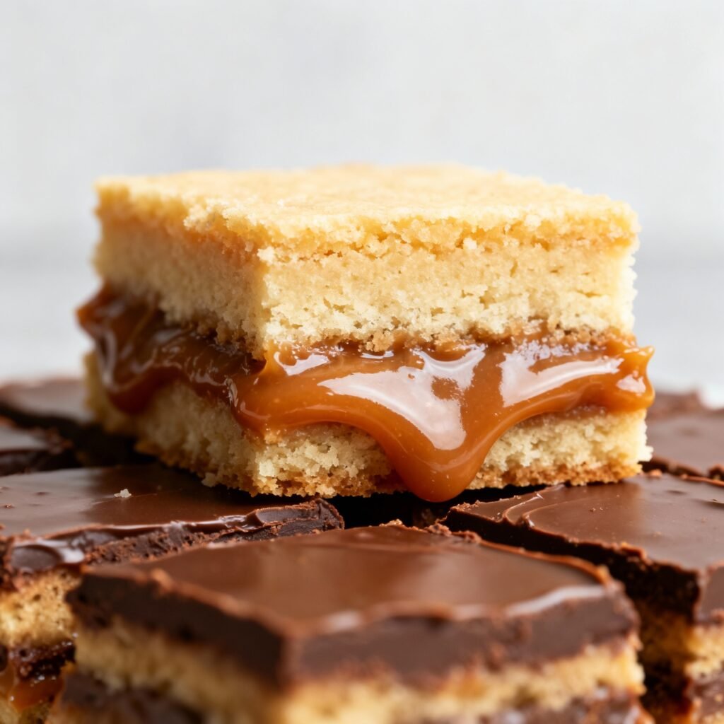 - The Shortbread Crust: Using a simple shortbread recipe creates a sturdy and buttery base that perfectly complements the sweet caramel and rich chocolate. The pre-baking of the crust ensures it’s firm enough to hold the other layers.