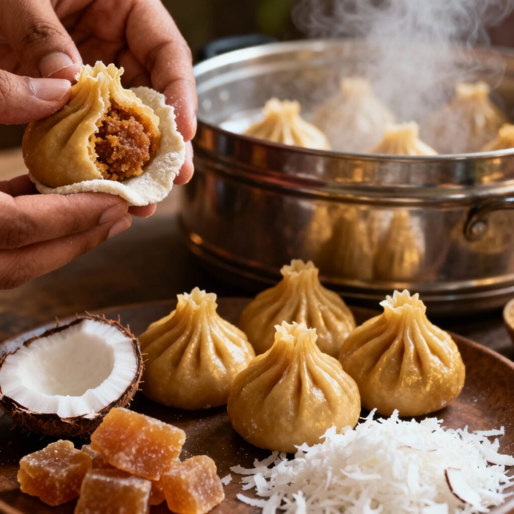 - Shape the Modaks Carefully: Thin and even edges are key to preventing cracks during steaming.