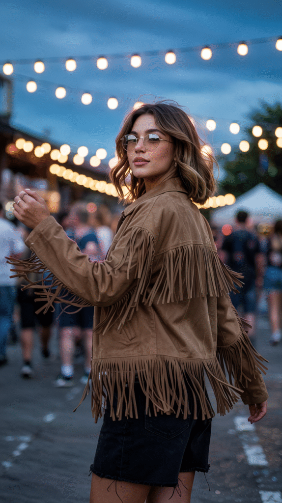 Fringe is the festival version of confetti—it just makes everything more fun. Whether it’s a suede jacket, a beaded top, or a swishy skirt, fringe turns every step (or dance move) into a full performance.
