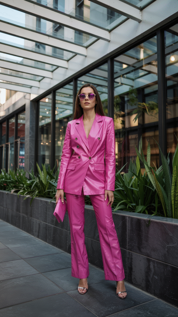 Yes, a suit—but not the boring “job interview” kind. Go for a bold color suit (hot pink, cobalt blue, even lime green if you dare) and either wear it with a lacy bralette underneath or nothing but body shimmer and confidence.