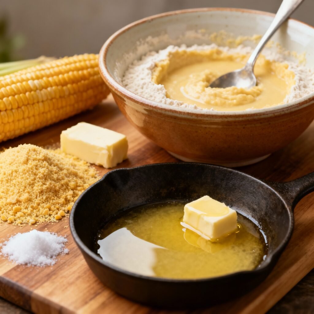 - Combine Dry Ingredients: In a large bowl, whisk together the cornmeal, salt, and baking soda. This ensures even distribution of the leavening agent.