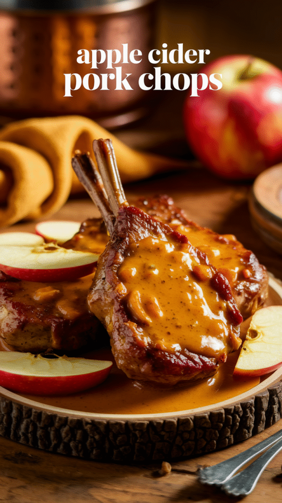 It’s like pork chops went apple-picking and came back fancy. Sweet cider + juicy pork = seasonal magic.