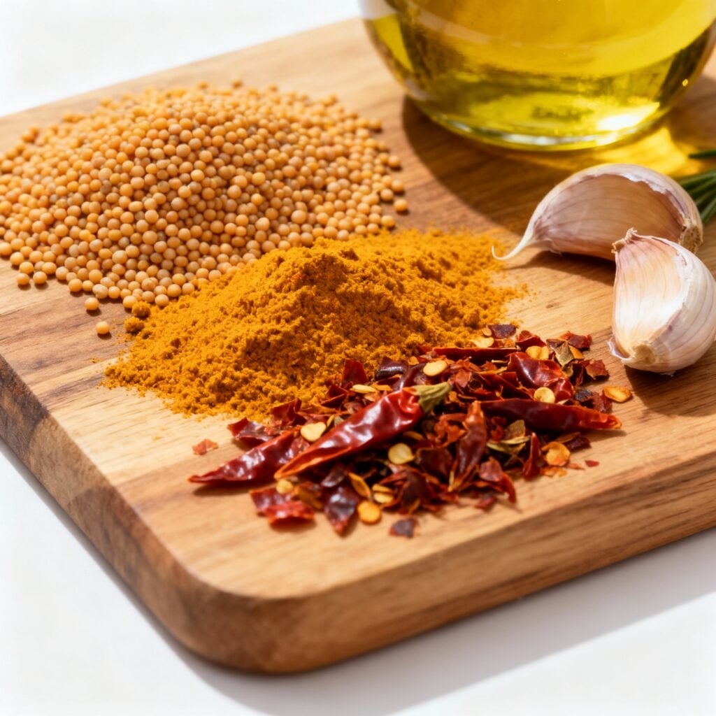 • Mustard Seed Blend: We use a combination of yellow and brown mustard seeds. Yellow seeds provide a milder, more familiar mustard flavor, while brown seeds contribute a sharper, more pungent bite.