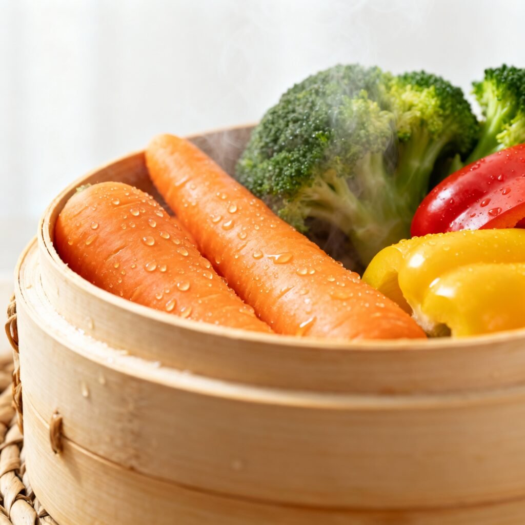 - Check for Doneness: Carefully pierce the vegetables with a fork. If they are tender-crisp, they are done. If not, continue steaming for another minute or two, checking periodically.