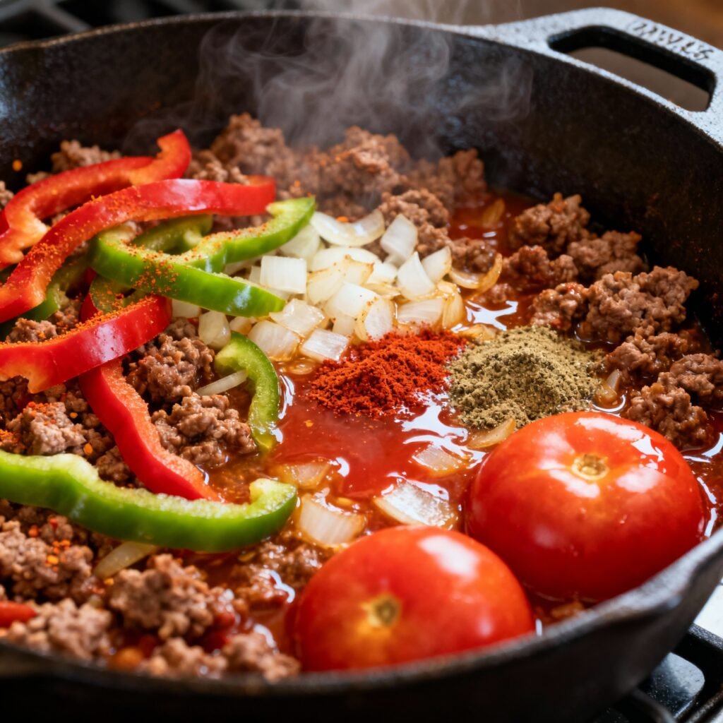 • Depth of Flavor: We build the flavor in layers, starting with browning the beef and then sautéing aromatic vegetables like onion and garlic. This creates a rich base that is further enhanced by a blend of chili powder, cumin, oregano, and a touch of smoked paprika.