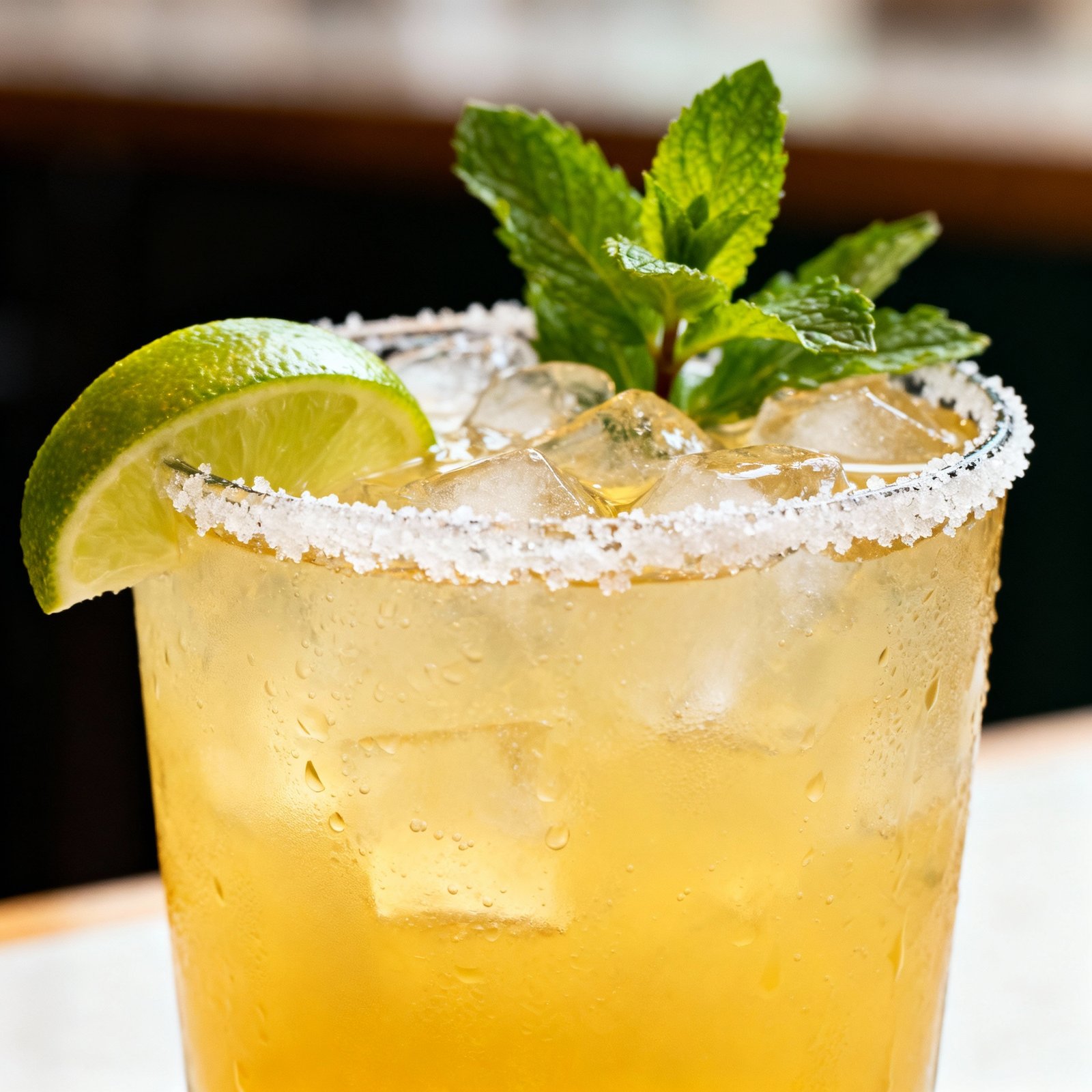 - Prepare the Glass: Rub the rim of a margarita glass (or any glass you prefer) with a lime wedge.