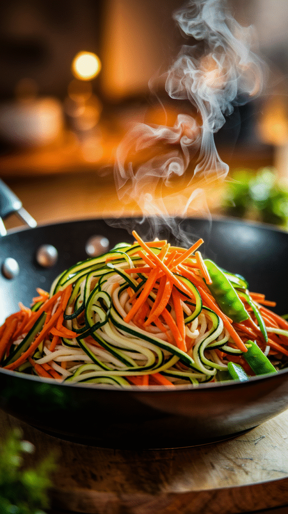 Zoodles = zucchini noodles. Yes, they’re trendy, but hear me out—they’re actually delicious when stir-fried with the right sauce.