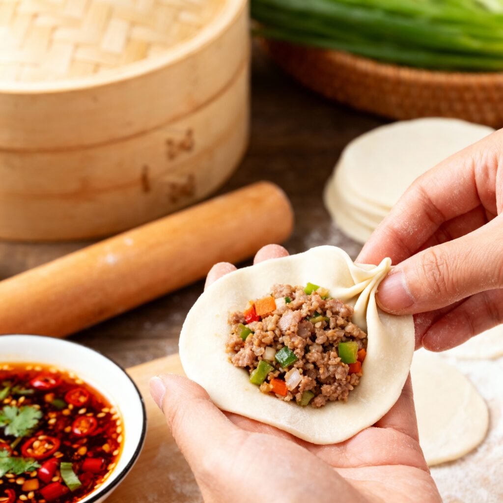 • Don’t Overfill: Avoid overfilling the momos, as this can make them difficult to seal and they may burst during cooking.